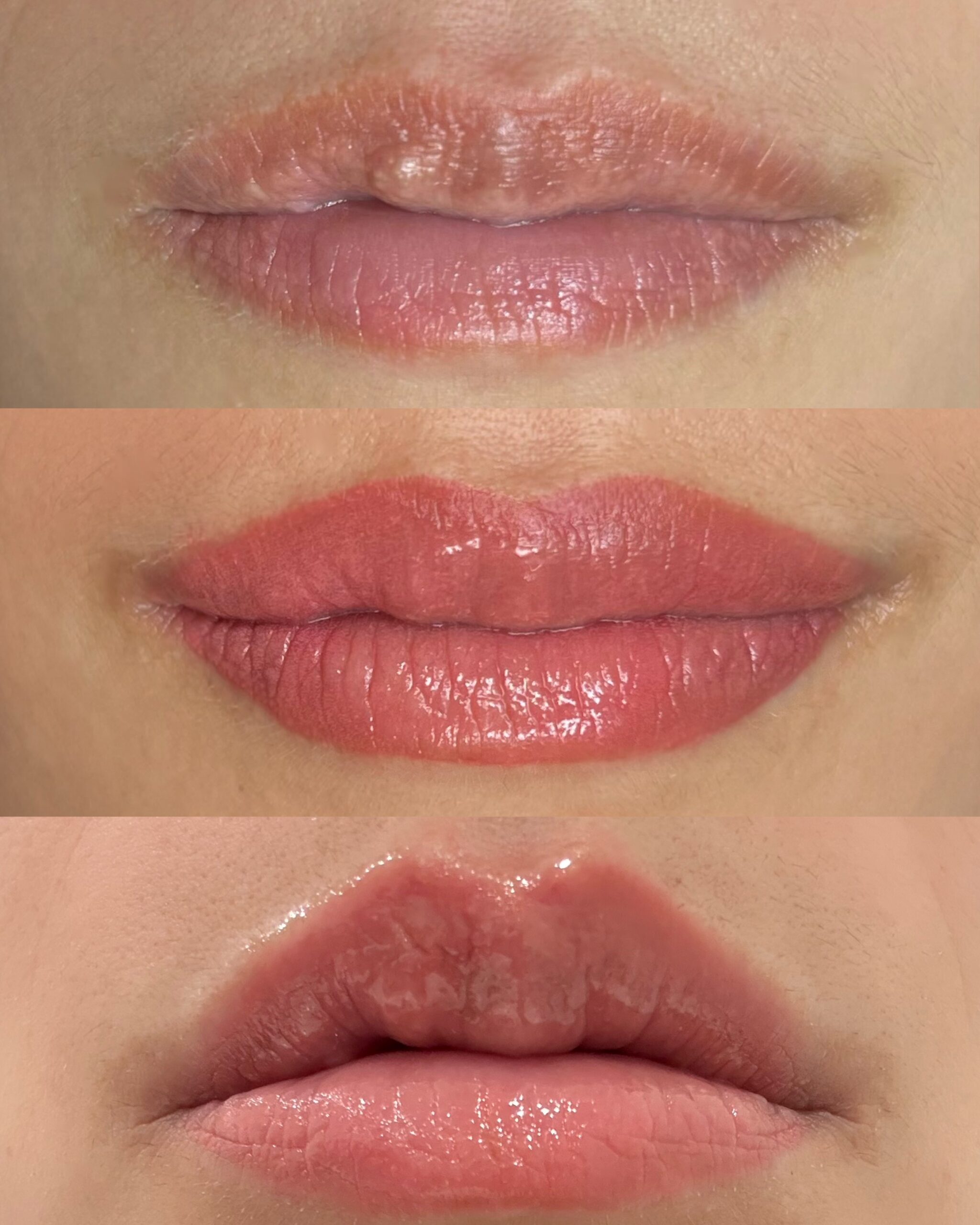 Lip blush tattoo is a semi-permanent cosmetic treatment that enhances the natural color, shape, and symmetry of your lips. Using a gentle tattooing technique, a custom pigment is deposited into the lips to create a soft, tinted look—similar to a sheer lipstick or natural flush. The result is fuller-looking, more defined lips with long-lasting color that fades gradually over time.